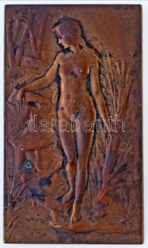 Franciaország 1904. "Meztelen női alak" Br emlékplakett, peremén "BRONZE" jelzés. Szign.: Georges Henri Prud'homme (39,5x68mm) T:2,2- patina