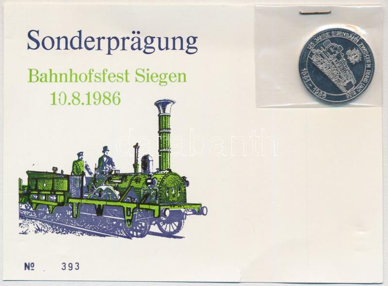 FRG 1986. "Railway is 125 years old between Ruhr and Sieg" metal coin (30mm) C:UNC edge error