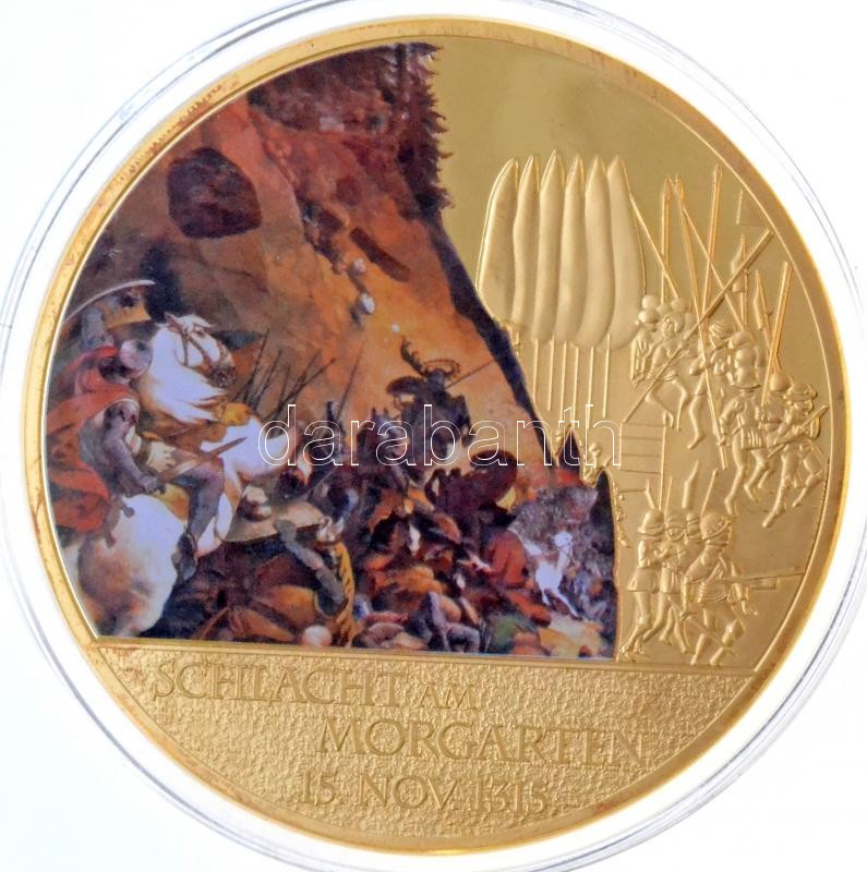 Leírás: Svájc DN "Historia Helvetica - Schlacht am Morgarten 15. Nov. 1315" aranyozott réz multikolor emlékérem (70mm) T:PP,1
