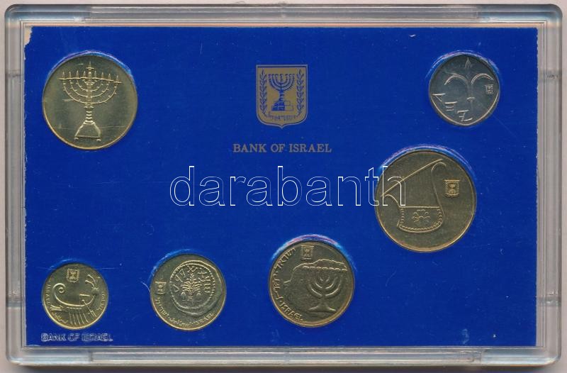 Izrael 1988. 1A-1S (5xklf) "Hanukka" + "Izraeli Bank" emlékérem szettben, eredeti banki csomagolásban T:1 Israel 1988. 1 Agora - 1 New Sheqel (5xdiff) "Hanukka" + "Bank of Israel" commemorative medal in set, in packing of the Bank of Israel C:UNC