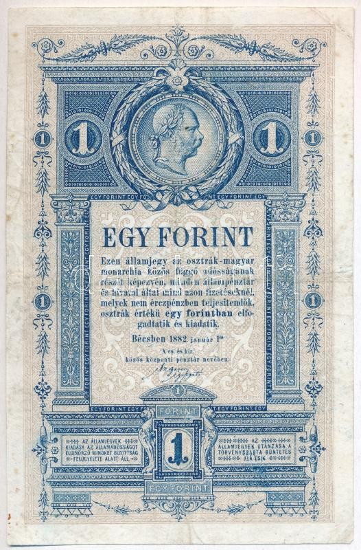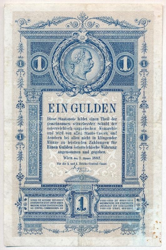Leírás: 1882. 1Ft / 1G sorozat- és sorszám nélkül, sarka restaurált T:III
