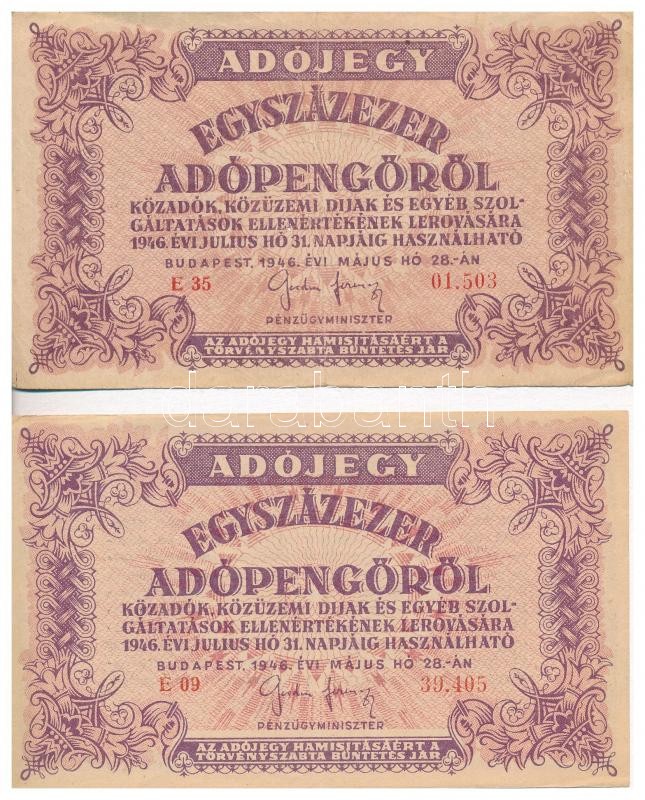 1946. 100.000AP (5x) sorszámozott változat T:III,III- https://www.darabanth.com/hu/361-Gyorsarveres/361.0/Numizmatika/Magyar-bankjegyek~2000007/1946-100000AP-5x-sorszamozott-valtozat-TIII-III-~II2066573