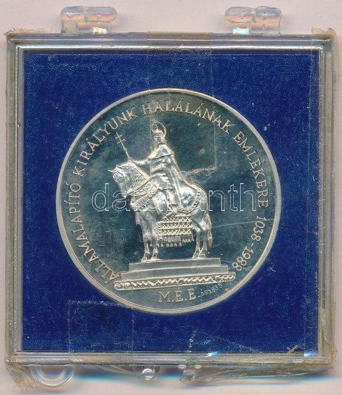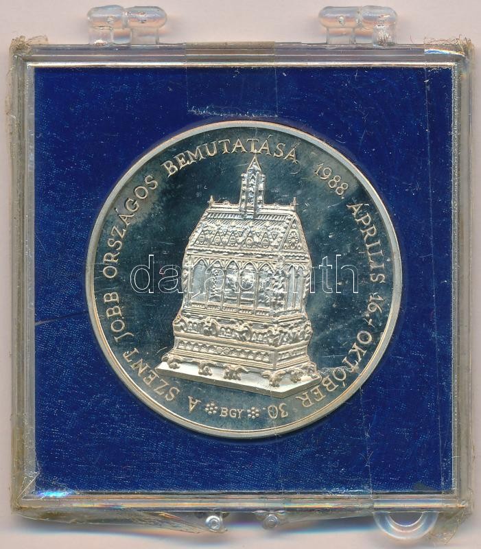 Bognár György (1944-) 1988. "MÉE - Államalapító királyunk halálának emlékére / A Szent Jobb országos bemutatása" jelzett Ag emlékérem ragasztott tokban (~35g/0.835/42,5mm) T:1 (PP) Adamo BP25