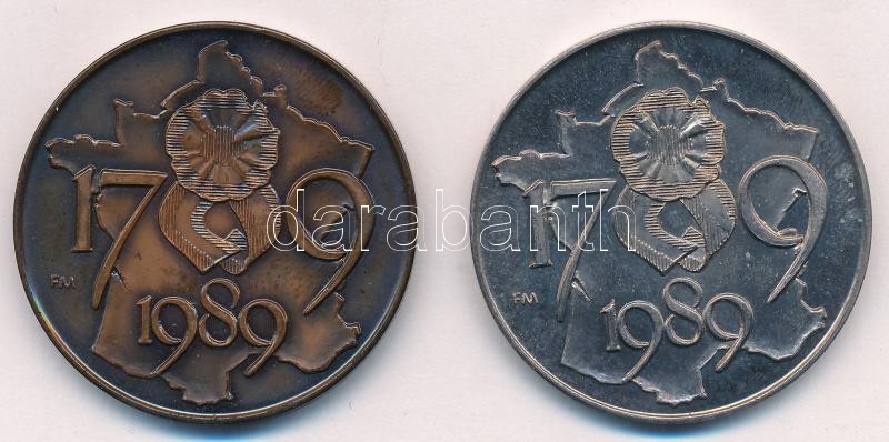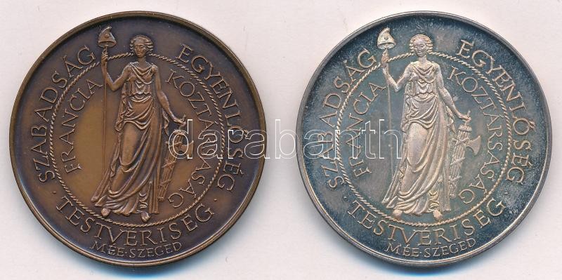 Fritz Mihály (1947-) 1989. "MÉE Szeged / Francia Forradalom 1789-1989" Br és Ag emlékérem pár, peremen "SZG" jelzéssel (35,73g/0.835/42,5mm) T:1