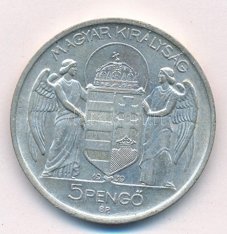 Leírás: 1939. 5P Ag "Horthy balra" T:1-