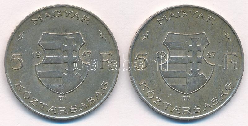 1947. 5Ft Ag "Kossuth" (2x) T:2,2- Adamo F8.1