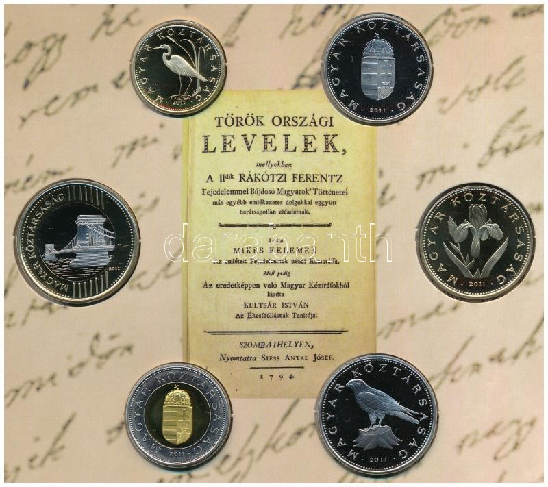 Leírás: 2011. 5Ft-200Ft (6xklf) forgalmi sor dísztokban, valamint 2011. "Mikes Kelemen" ezüstözött Cu-Ni-Zn emlékérem (29,2mm), "Magyarország pénzérméi" sorozat T:PP Adamo FO45.4