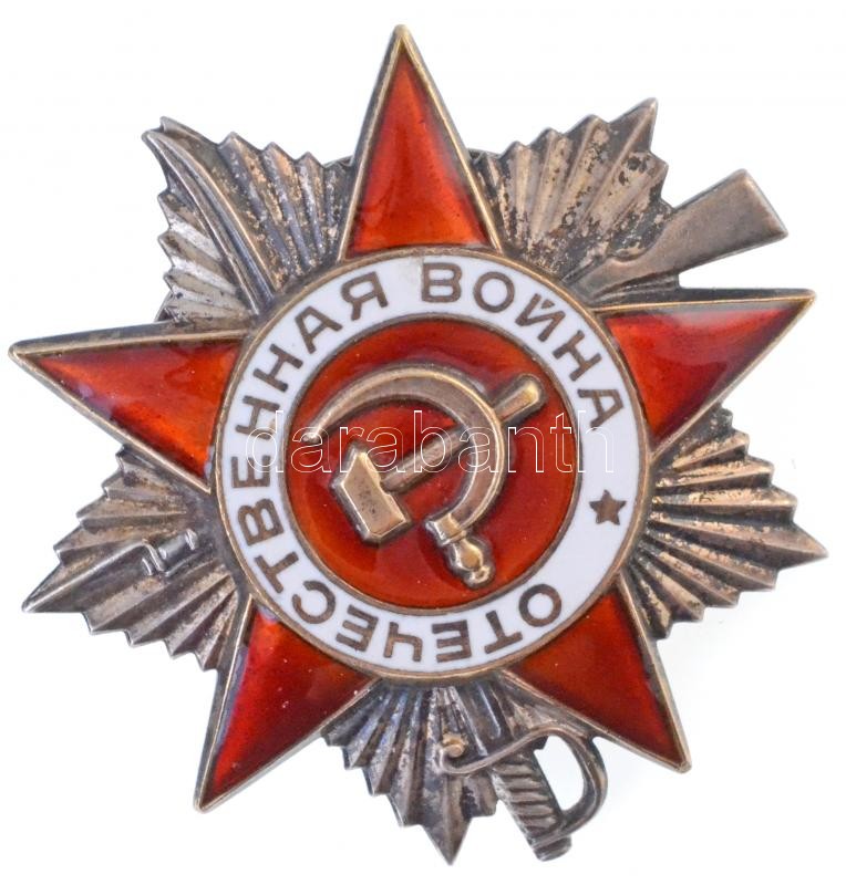 Szovjetunió ~1985. "Honvédő Háború Érdemrend II. osztálya" ezüstözött, zománcozott kitüntetés, hátlapján sorszámmal T:1-,2 Soviet Union ~1985. "Order of the Patriotic War 2nd class" silver plated, enamelled decoration, serial on its back C:AU,XF