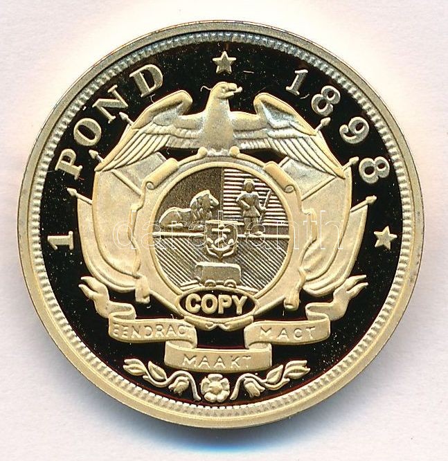 Dél-Afrika DN "1 POND 1898 / ZUID AFRIKAANSCHE REPUBLIEK" a "Single 9" aranyozott Ag modern utánverete, peremen jelzett, "COPY" jelzéssel (10,12g/0.999/25mm) T:PP