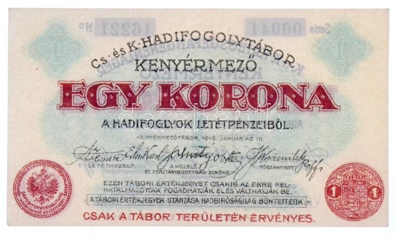 Leírás: Kenyérmező / Hadifogolytábor 1916. január 15. 1K arab sorozat- és sorszámmal T:I