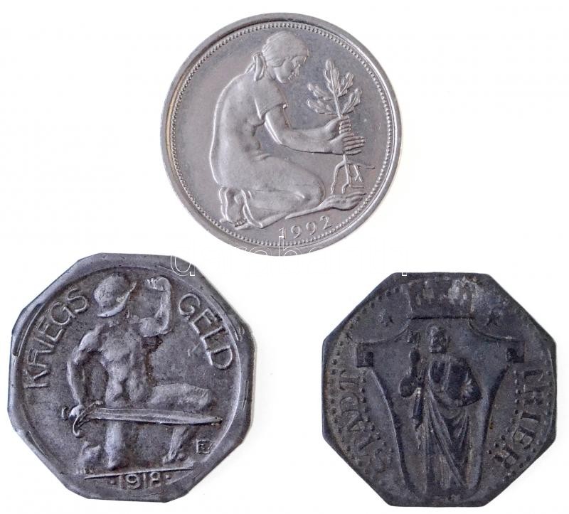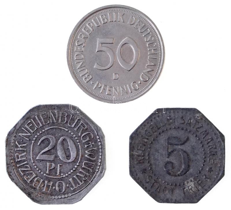 Leírás: Német Birodalom / Neuenbürg 1918. 20pf szükségpénz + Weimari Köztársaság / Trier ~1919. 5pf Zn + Németország 1992D 50pf T:2,1-