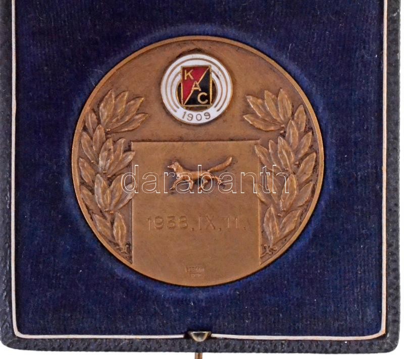 1938. "KAC 1909" a Kolozsvári Atlétikai Club zománcbetétes Br emlékérme, "1938. IX. 11." gravírozással, "BERÁN N BPEST" gyártói jelzéssel, eredeti tokban (50mm) T:1