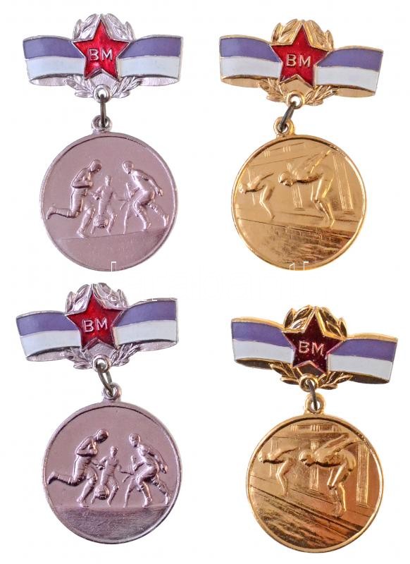 Leírás: 1959. 4 db-os "BM" Újpest fém jelvény labdarúgás és úszás témában (30x~55mm) T:1-