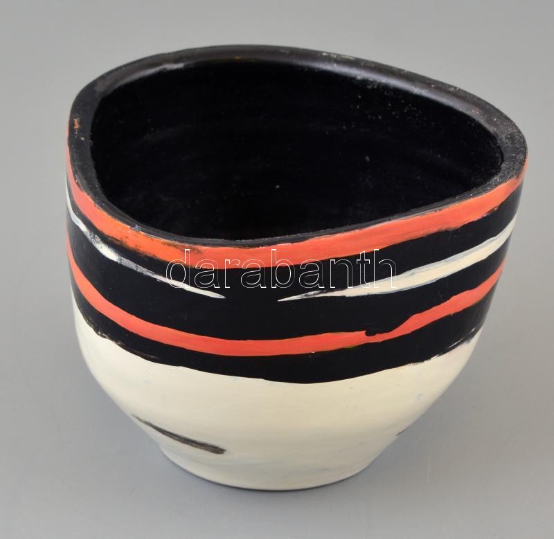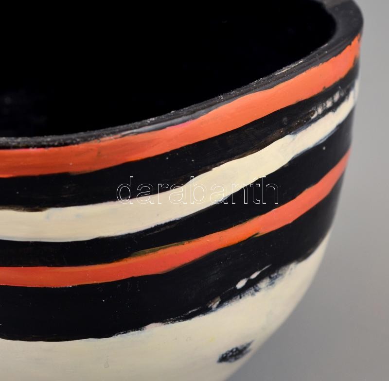 Gorka Lívia (1925-2011): Narancs-fekete csíkos kis kaspó. Festett máza... https://www.darabanth.com/hu/361-Gyorsarveres/361.0/Porcelan-keramia-uveg/Keramiak~500006/Gorka-Livia-1925-2011-Narancs-fekete-csikos-kis-kaspo-Festett-mazas-keramia-jelzett-apro~II2085919
