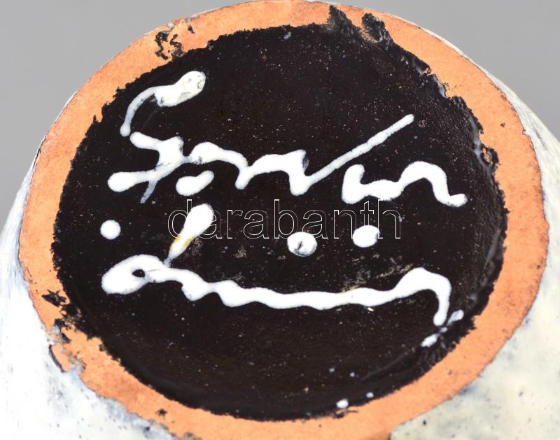 Leírás: Gorka Lívia (1925-2011): Narancs-fekete váza. Festett mázas kerámia, jelzett, apró mázhiánnyal, kopásnyomokkal, m: 29,5 cm