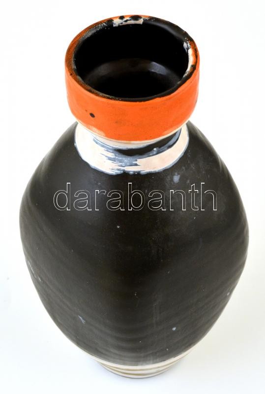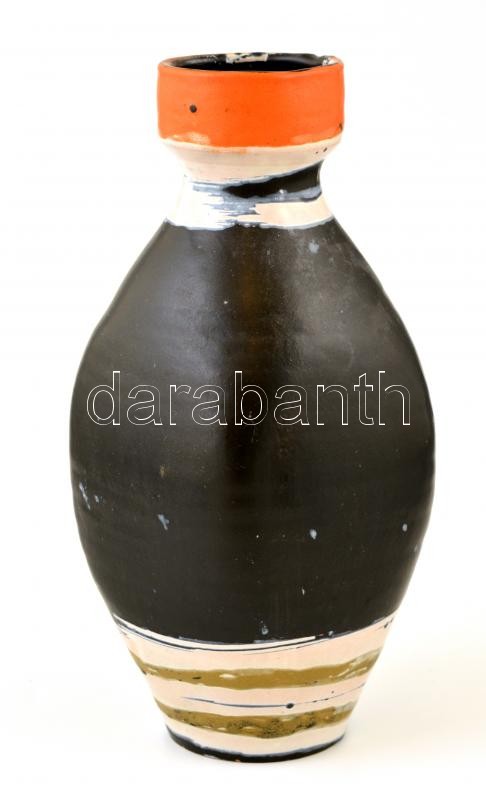 Leírás: Gorka Lívia (1925-2011):Fekete csíkos váza. Festett mázas kerámia, jelzett, apró kopásnyomokkal, m:26,5 cm