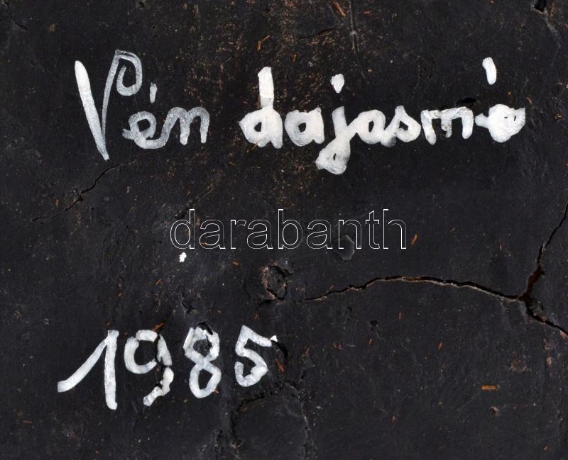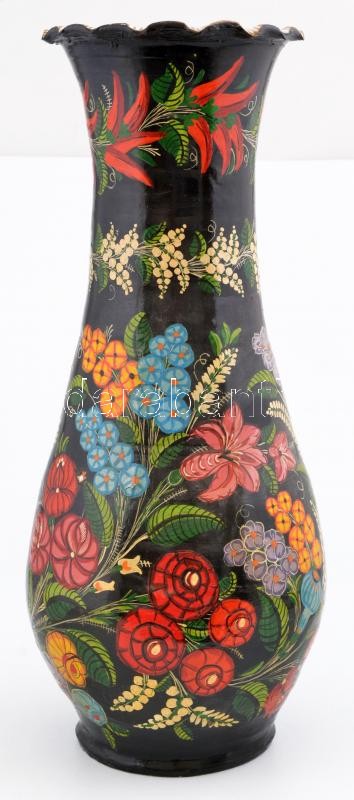 Leírás: Jelzett (Vég Lajosné) fazekas padlóváza, kézzel festett, kopásnyomokkal, m: 53,5 cm