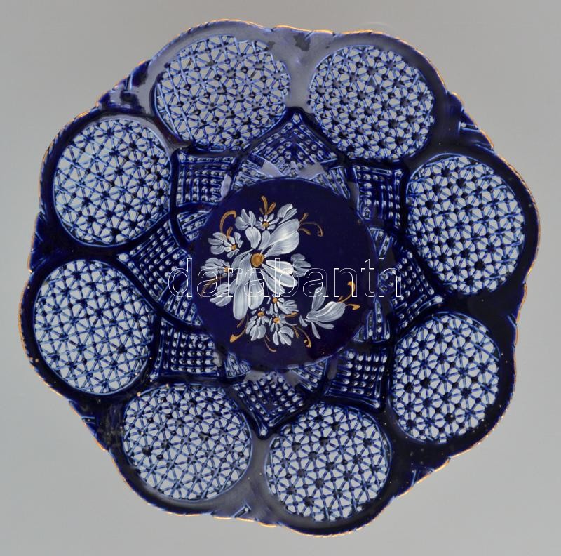 Leírás: Fajansz gyümölcsöstál jelzés nélkül. Kézzel festett, kopásokkal. 20x13 cm