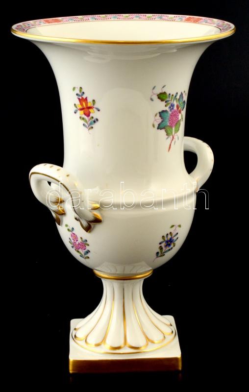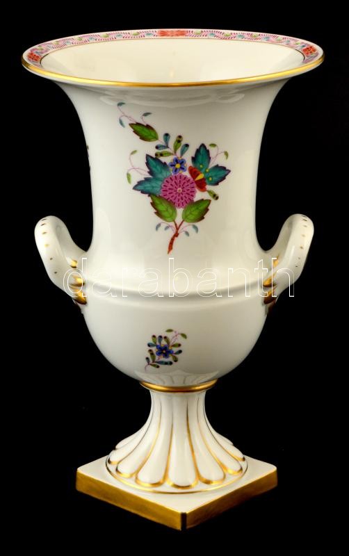 Leírás: Herendi (cca 1935) Apponyi fantázia mintás urnaváza. Kézzel festett, jelzett, apró kopásokkal. m: 25 cm