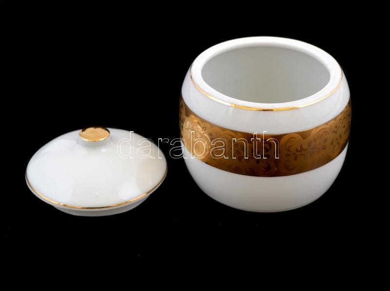 Leírás: Hollóházi porcelán kis bonbonier, kézzel festett, jelzett, kis kopásnyomokkal, m: 7 cm, d: 6 cm