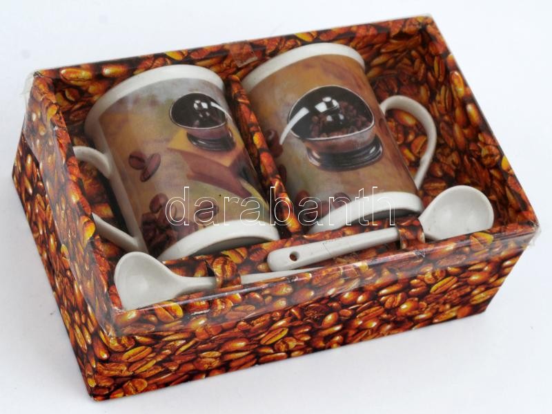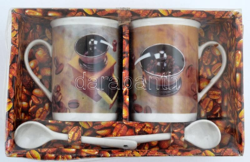 Leírás: Két személyes reggeli kávázó szett. Bögre és porcelán kanál Eredeti dobozában