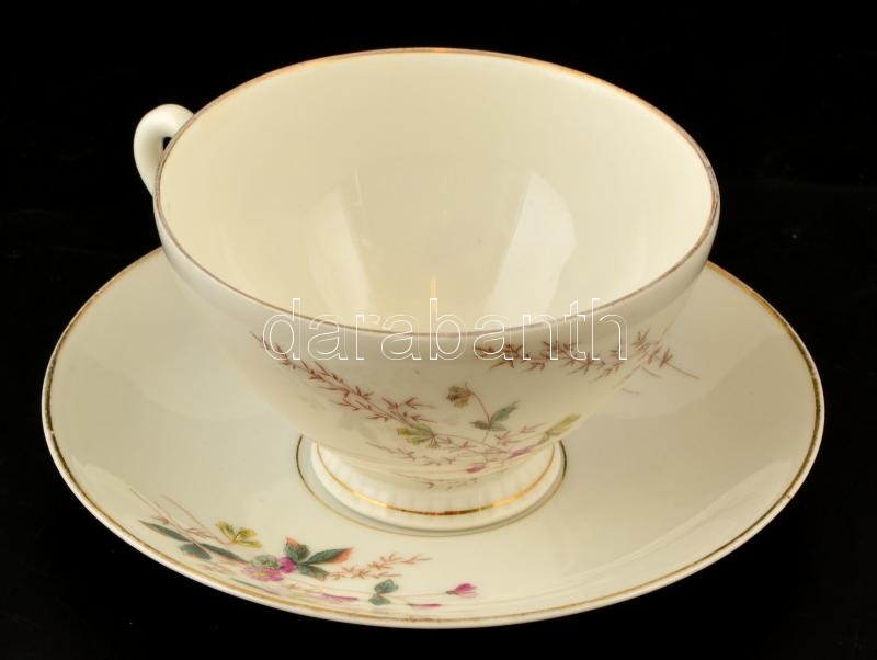 Leírás: Teás csésze és alj, kézzel festett, jelzés nélkül, kopás nyomokkal