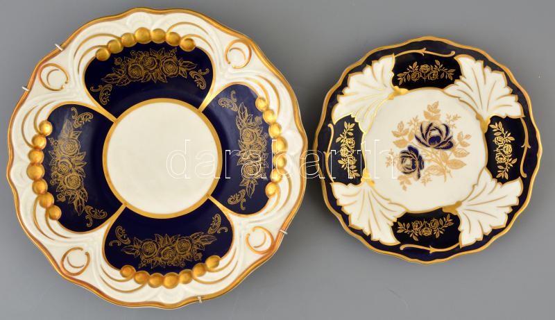 Leírás: Weimar Echt Kobalt porcelán tál, 2 db, jelzett, részben kézzel festett, kis kopásnyomokkal, d: 18 és 25 cm