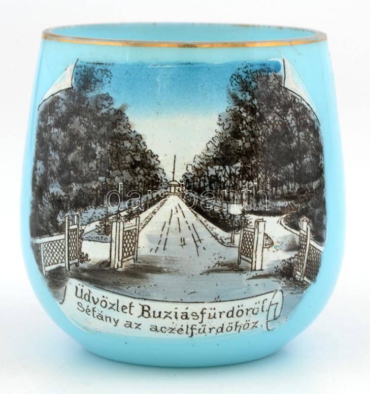 Buziásfürdő kék tejüveg emlékpohár, kézzel festett, kopásnyomokkal, m:... https://www.darabanth.com/hu/361-Gyorsarveres/361.0/Porcelan-keramia-uveg/Uvegtargyak~500009/Buziasfurdo-kek-tejuveg-emlekpohar-kezzel-festett-kopasnyomokkal-m-7-5-cm-d-6-5-cm~II2084000