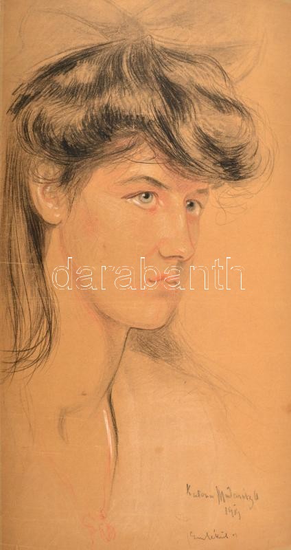 Leírás: Madarász Adeline, Katona Béláné (1871-1962): Női portré. Vegyes technika, karton, jelzett, 50×27 cm