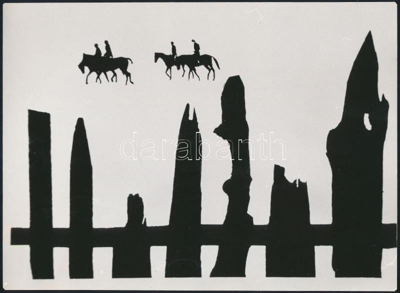 cca 1977 Gebhardt György (1910-1993) budapesti fotóművész hagyatékából, aláírt vintage fotóművészeti alkotás (Lovasok), a magyar fotográfia avantgarde korszakából, 17x23,2 cm