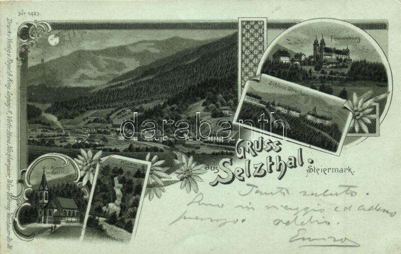 1898 Selzthal, Frauenburg, Schloss Strechau, Klamm, Kirche / castle, c... https://www.darabanth.com/hu/362-Gyorsarveres/362.0/Kepeslapok/Ausztria~1000017/1898-Selzthal-Frauenburg-Schloss-Strechau-Klamm-Kirche-castle-church-floral-Art-Nouveau-lit~II1548089
