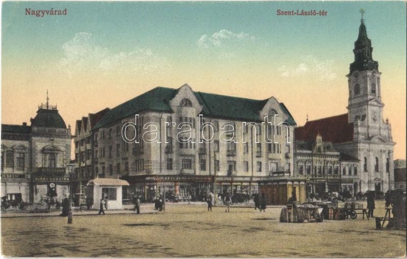 Nagyvárad, Oradea; Szent László tér, Réti Jenő, Gláry Gusztáv üzlete, ... https://www.darabanth.com/hu/362-Gyorsarveres/362.0/Kepeslapok/Erdely~1000006/Nagyvarad-Oradea-Szent-Laszlo-ter-Reti-Jeno-Glary-Gusztav-uzlete-piaci-arusok-Moskov~II2090492