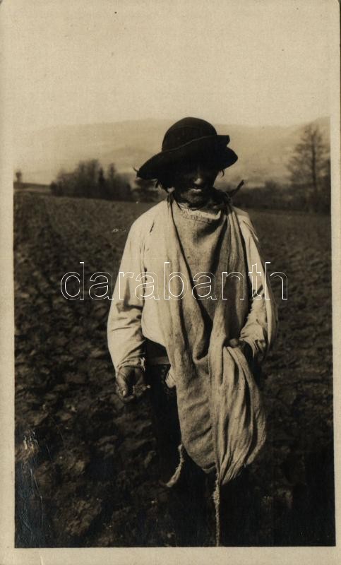 Leírás: Puhó, Púchov; Rozsievac z Mostíst (Púchovská dolina). Národopisny odbor Matice Slovenskej / magvető férfi a puhói völgyből / sower, folklore