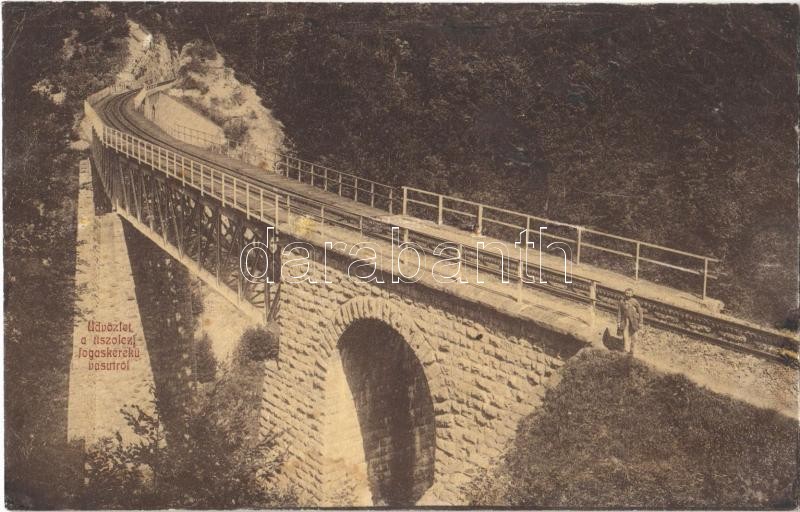 Tiszolc, Tisovec; Tiszolc-völgyi fogaskerekű vasút Breznóbánya és Tiszolc között, iparvasút, híd, viadukt. Kreisler József kiadása. W.L. (?) 160. / standard gauge cogwheel railway between Brezno nad Hronom and Tisovec, industrial railway viaduct (r)