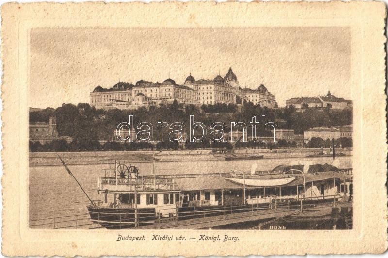 1912 Budapest I. Királyi vár a pesti rakpartról nézve, DDSG gőzhajó https://www.darabanth.com/hu/362-Gyorsarveres/362.0/Kepeslapok/Magyarorszag~1000005/1912-Budapest-I-Kiralyi-var-a-pesti-rakpartrol-nezve-DDSG-gozhajo~II2089874
