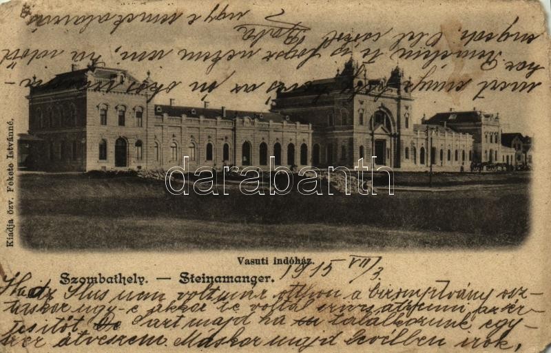 Leírás: 1915 Szombathely, Steinamanger; vasúti indóház. Özv. Fekete Istvánné kiadása (EM)