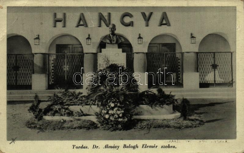 Leírás: 1942 Tordas, Dr. Almásy Balogh Elemér szobra, Hangya fogy. szövetkezet üzlete és saját kiadása (EB)