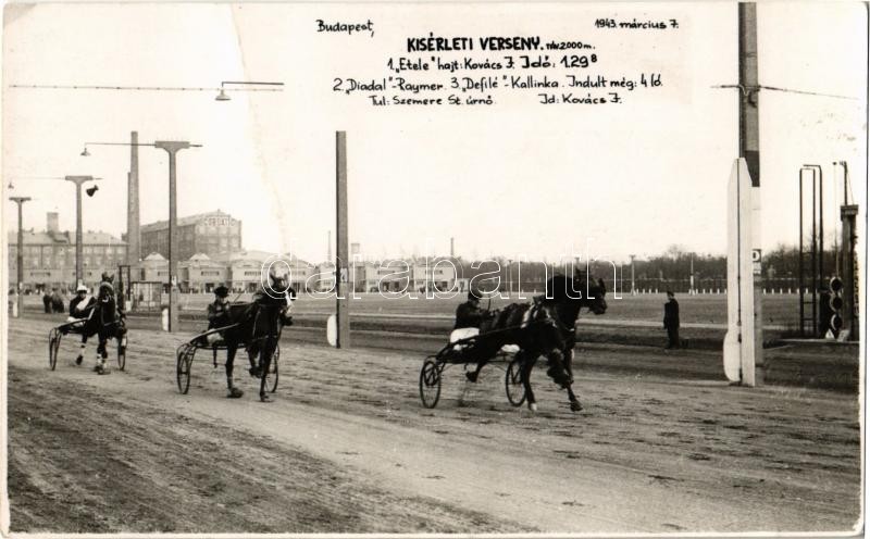 1943 Budapest VII. Lóversenypálya, kísérleti verseny, ügető. Schäffer ... https://www.darabanth.com/hu/362-Gyorsarveres/362.0/Kepeslapok/Magyarorszag~1000005/1943-Budapest-VII-Loversenypalya-kiserleti-verseny-ugeto-Schaffer-udv-fenykepesz-felv~II1995711