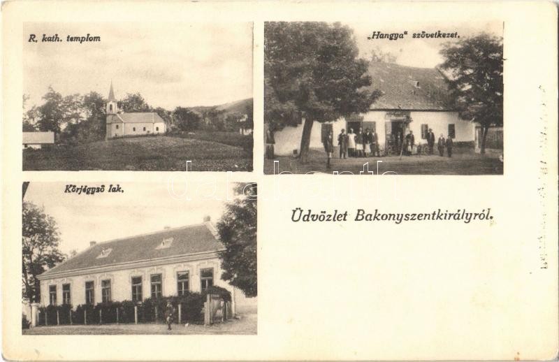 Leírás: Bakonyszentkirály, Római katolikus templom, Körjegyző lak, Hangya Szövetkezet üzlete és saját kiadása