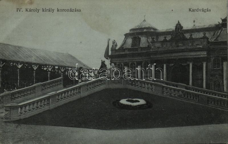 Leírás: Budapest, IV. Károly királlyá koronázása, kardvágás