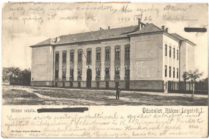 Leírás: Budapest XV. Rákospalota, M. kir. állami elemi népiskola és óvoda. Wollner Alajos kiadása (EK)