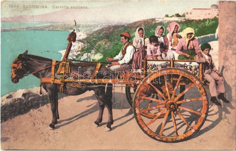 Taormina, Carretta siciliana / Sicilian cart, Italian folklore https://www.darabanth.com/hu/362-Gyorsarveres/362.0/Kepeslapok/Olaszorszag~1000036/Taormina-Carretta-siciliana-Sicilian-cart-Italian-folklore~II2089917