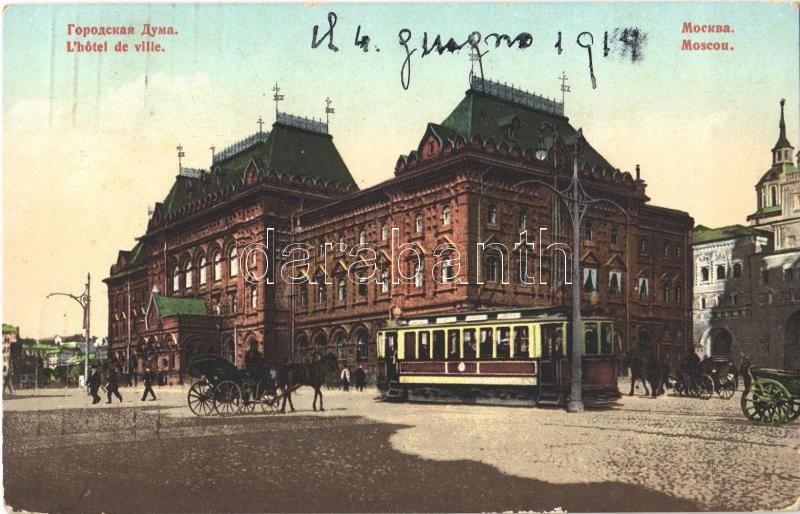 1914 Moscow, Moskau, Moscou; L'hotel de ville / hotel, tram https://www.darabanth.com/hu/362-Gyorsarveres/362.0/Kepeslapok/Oroszorszag~1000037/1914-Moscow-Moskau-Moscou-Lhotel-de-ville-hotel-tram~II2091333