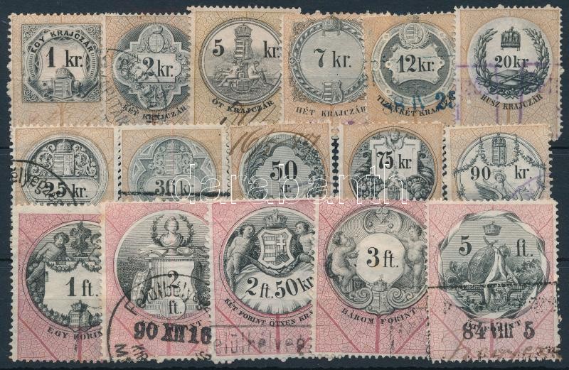 1880 16 db klf okmánybélyeg https://www.darabanth.com/hu/362-Gyorsarveres/362.0/Magyar-filatelia-es-postatortenet/Okmanybelyegek~500017/1880-16-db-klf-okmanybelyeg~II2087523