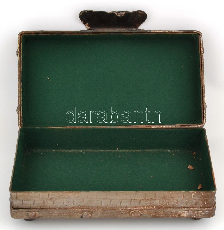 Leírás: Dekoratívan megmunkált nagy méretű fém asztali kínáló ládika. 26x15 cm