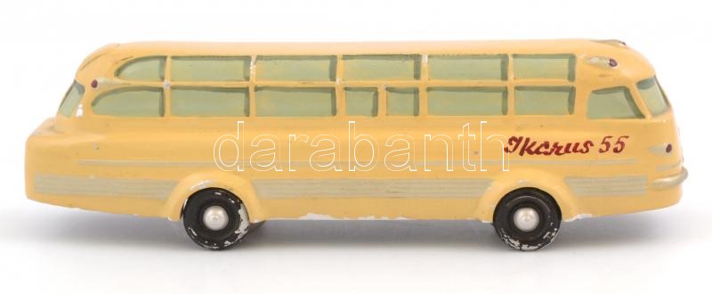 Leírás: Ikarus 55 festett alumínium makett, kerekei nem gurulnak, jelzés nélkül, kopott, h: 18 cm
