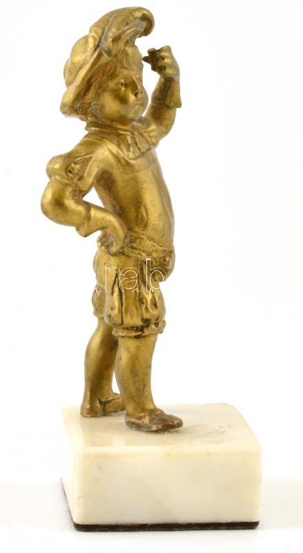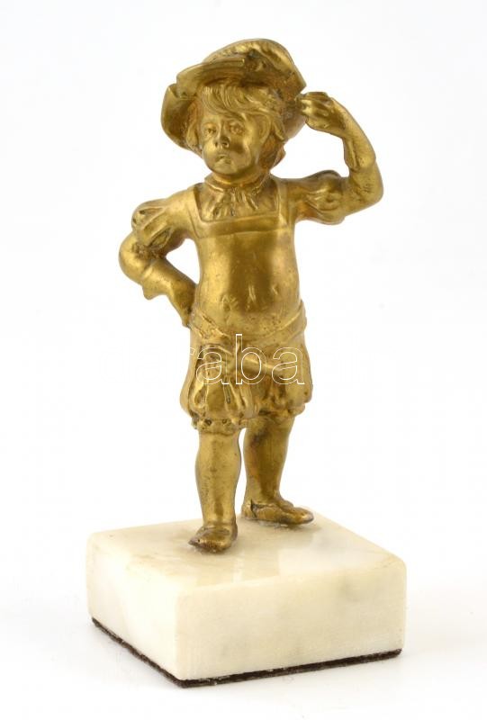 Leírás: Gyerek, réz figura, márvány talapzaton, m: 13 cm