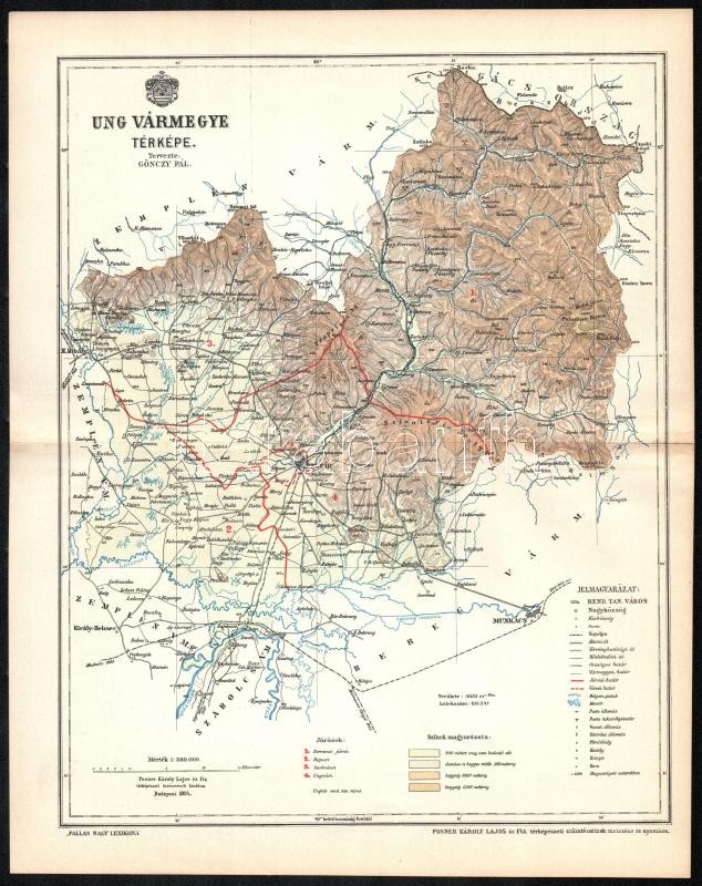Leírás: 1894 Ung vármegye térképe, tervezte: Gönczy Pál, Kiadja: Posner Károly Lajos és Fia, 24×29 cm