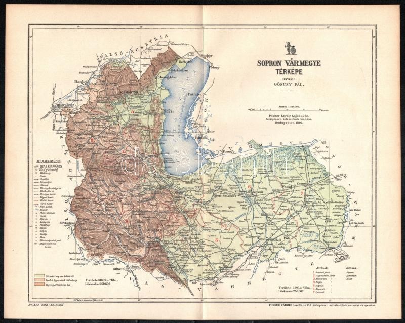 1897 Sopron vármegye térképe, tervezte: Gönczy Pál, kiadja: Posner Kár... https://www.darabanth.com/hu/362-Gyorsarveres/362.0/Mutargy-papirregiseg-egyeb/Terkepek~500029/1897-Sopron-varmegye-terkepe-tervezte-Gonczy-Pal-kiadja-Posner-Karoly-Lajos-es-Fia-24C3972~II2088984