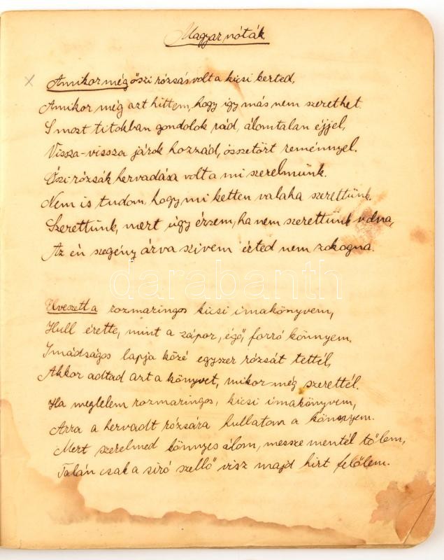 cca 1900 Magyar nóták kéziratos gyűjteménye, füzetben https://www.darabanth.com/hu/362-Gyorsarveres/362.0/Mutargy-papirregiseg-egyeb/Tortenelmi-dokumentumok-keziratok-erdekessegek~500019/cca-1900-Magyar-notak-keziratos-gyujtemenye-fuzetben~II2092558